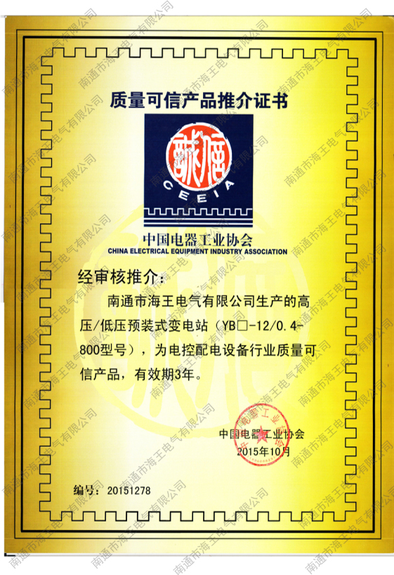 質(zhì)量可信產(chǎn)品推介證書(shū)